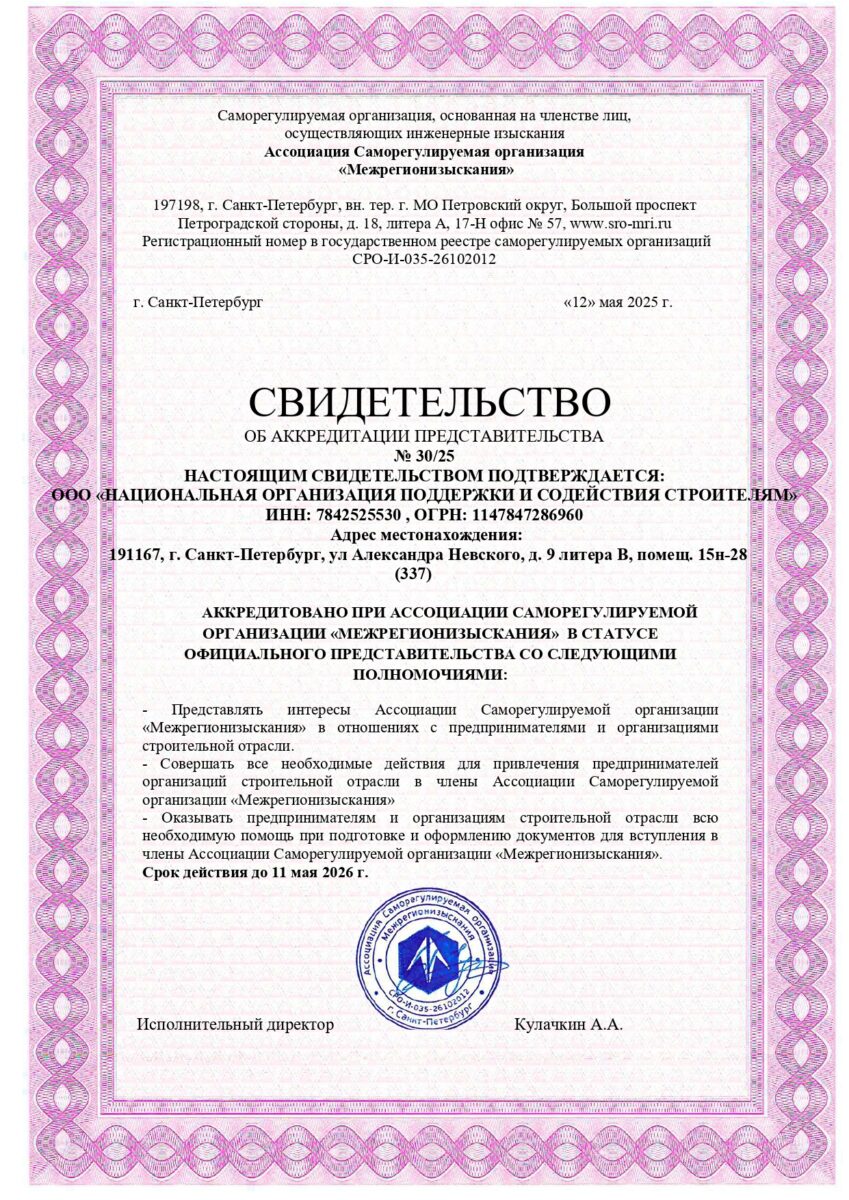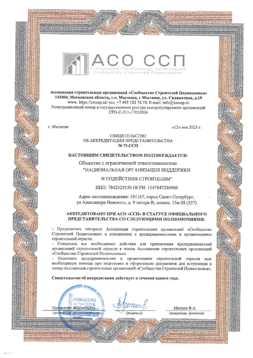Организация «НОПСС» является аккредитованным представителем крупнейших СРО России с 2014 года. Согласно федеральному закону N 372-ФЗ, у членов СРО в штате должны быть не менее двух специалистов, сведения о которых включены в национальный реестр, соответствующих следующим требованиям: