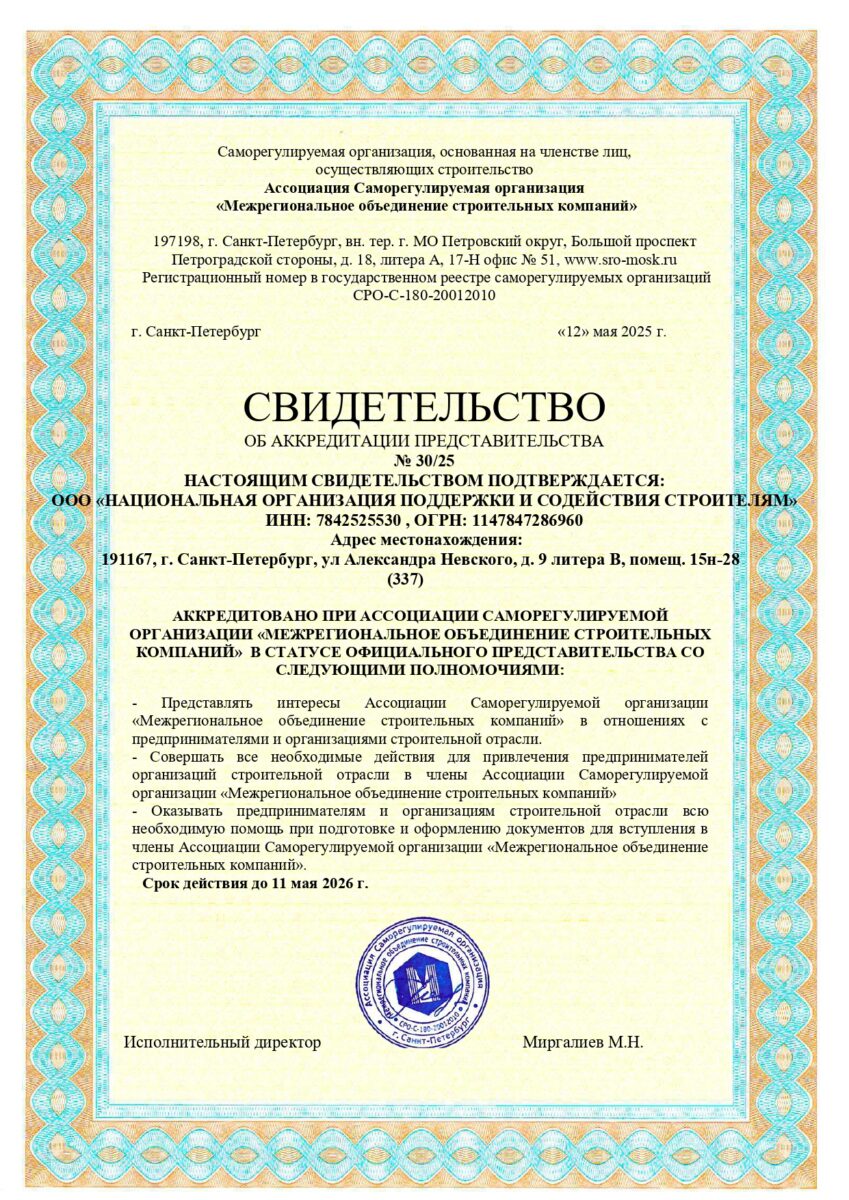 • Наличие общего трудового стажа по профессии, специальности или направлению подготовки в области строительства не менее десяти лет